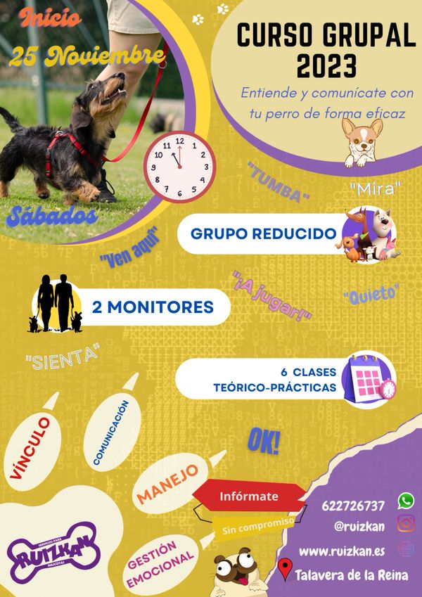El objetivo de estas clases es que aprendáis a establecer una relación sana, fuerte y divertida con vuestro perro a través de diferentes rutinas, actividades y ejercicios. Entre otras cosas, os enseñaremos a fortalecer vuestro vínculo, a crear una comunicación eficaz, a ser su foco de atención, y a divertiros con él.